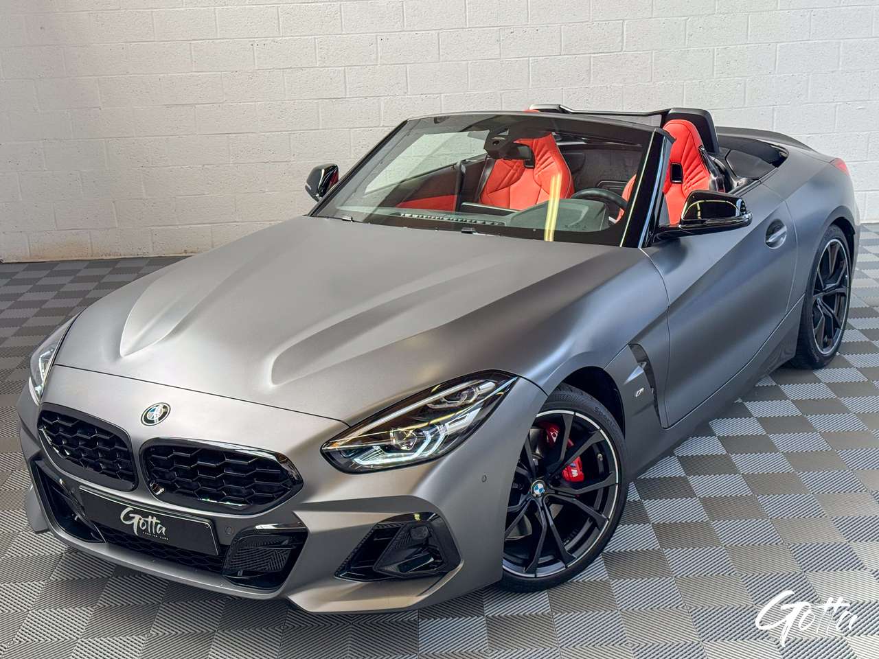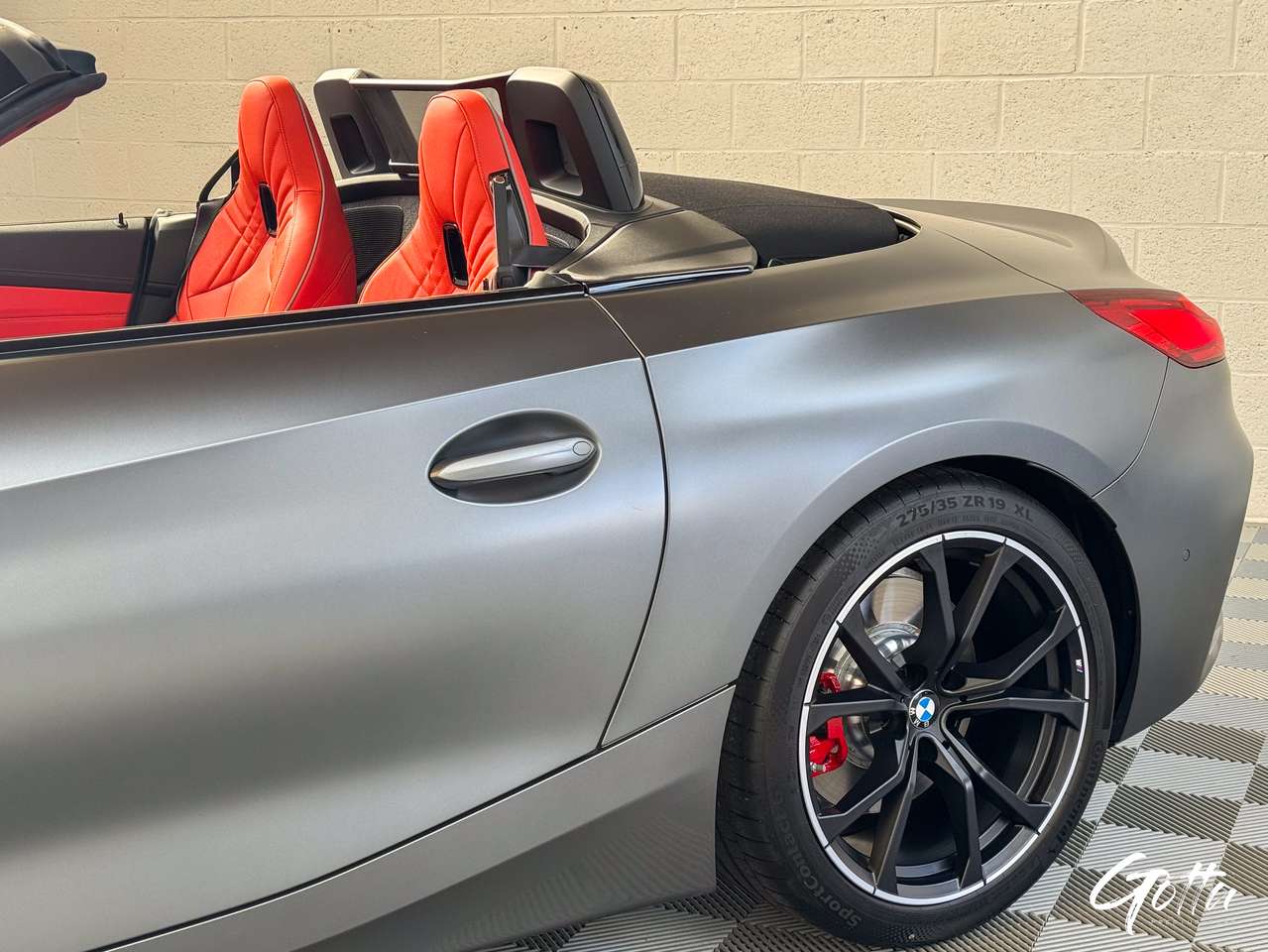 Couleur INDIVIDUAL Frozen Grey (couleur mate), Jantes Bi-Color 19 "772 M Bicolor Jetblack", Etriers de freins rouge, Sellerie en cuir "Vernasca' Magmarot " (look unique).
